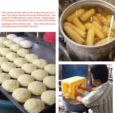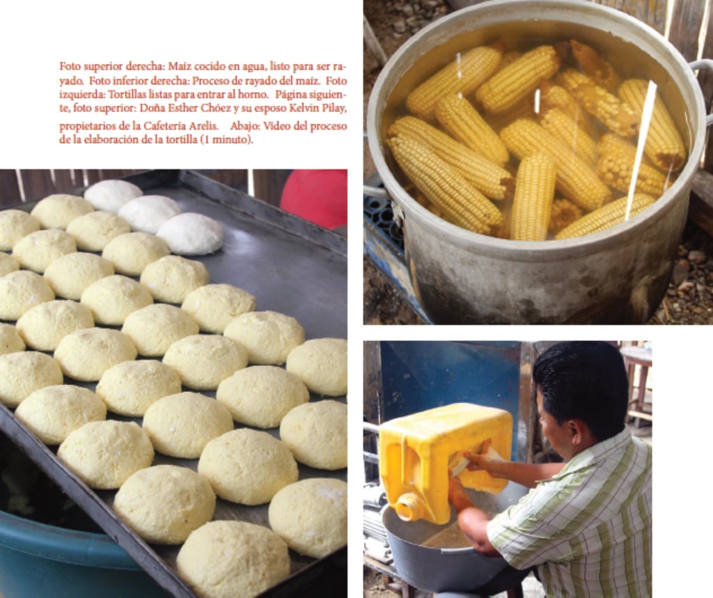 Para los que desconocen sobre la cultura culinaria del Ecuador, Manabí es una de las provincias que más diversidad gastronómica tiene, la mayoría de sus platos están hechos a base de plátano, maíz, maní, mariscos o gallina criolla y según el argot popular, una mujer no es manabita si no sabe preparar uno de ellos. En la comuna de Sancán, ubicado a 10 km de Jipijapa, en la vía que conduce a Montecristi, encontramos a Doña Ester Chóez y su esposo, Kelvin Pilay, ambos oriundos de la zona y propietarios de la Cafetería Arelis, una más de los cerca de 110 negocios que están ubicados a ambos lados de la vía. Y es que Sancán se ha convertido en un referente en cuanto a la venta de bocados preparados con harina de maíz criollo y cuyo producto estrella es la tortilla, rellena con queso o chicharrón. Su elaboración demanda de varias horas y empieza por seleccionar el maíz, que debe ser criollo y amarillo. Por la noche se ponen a hervir y luego se dejan enfriar, para ser rayados al amanecer del día siguiente, aproximadamente a las 4 am, que es la hora en que empieza la nueva jornada. Una vez obtenida la harina, esta se mezcla con mantequilla, sal y alguno que otro ingrediente secreto, que tiene cada familia, y que le da un sabor característico. Finalmente se las rellena con queso y chicharrón y se hornean en hornos a gas o en hornos de leña, como lo hacían años atrás.